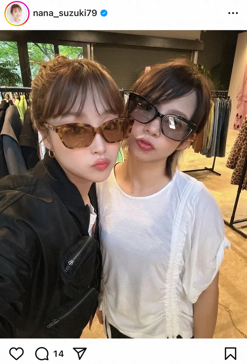 鈴木は「高木菜那さんと一緒に、若槻千夏さんのブランド とpecoちゃんのブランド の展示会に行ってきましたー」と投稿。2018年平昌冬季五輪でスピードスケート女子団体パシュート、女子マススタートと2個の金メダルを獲得した高木菜那さんと、若槻の手掛けるアパレルブランド「WCJ」のサングラスをかけた自撮り写真を公開した。