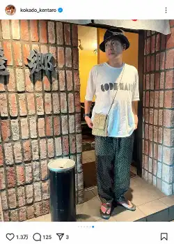 コカドは「今月9月9日のつぼっちの誕生日に、パンツを作ってプレゼントしました」と報告。「中華料理屋で渡したら中華料理屋で履いてくれたよ。中華料理屋の店員さんが褒めてくれてたよ」と、お笑いトリオ「我が家」の坪倉由幸の写真を公開した。
