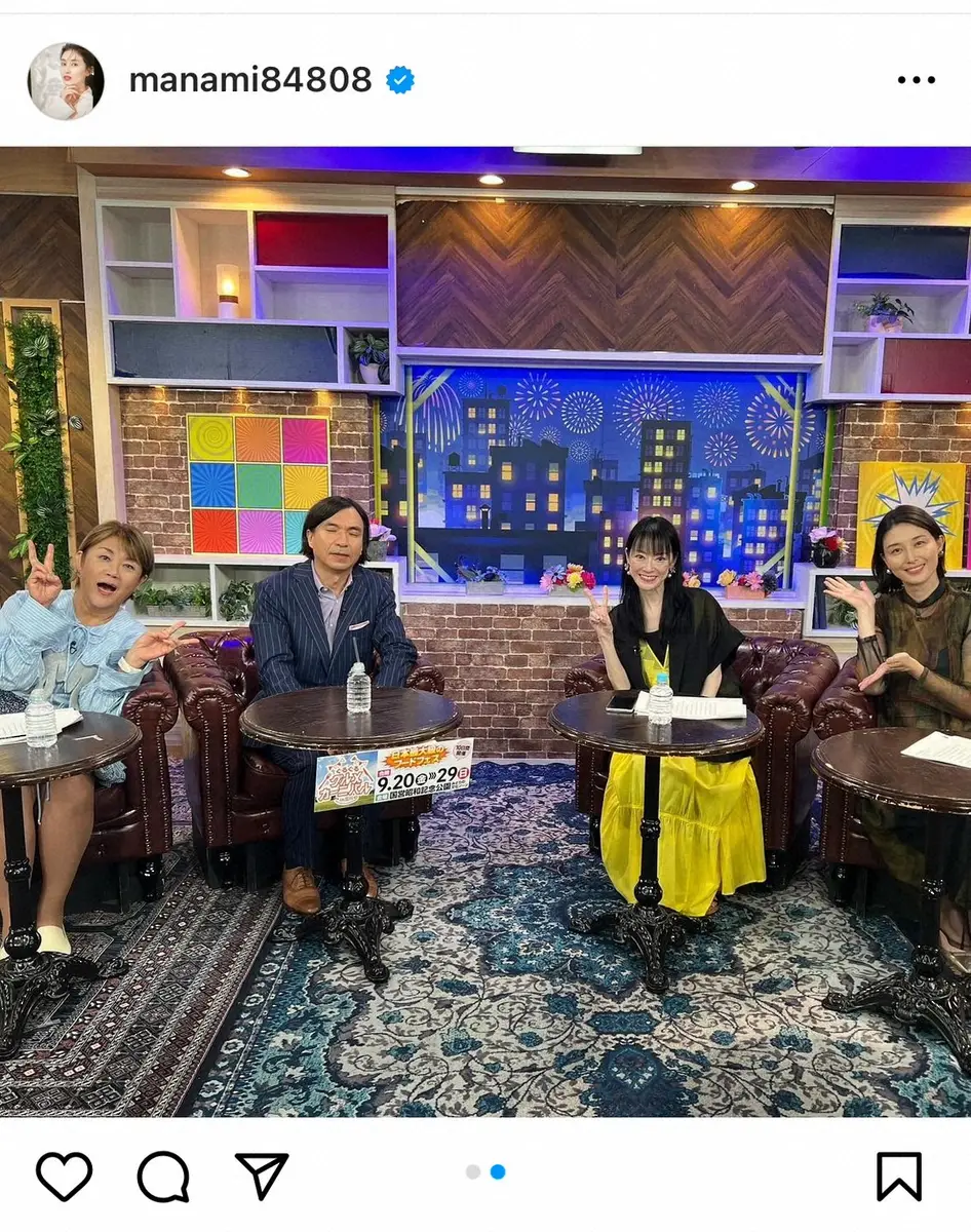 また「今日はMX『バラいろダンディ』最後の日でした」と9月末での番組終了に先駆け、自身は18日の放送が最後の出演だったことを報告し「2013年10月からお世話になり、11年があっという間に経っていました。その間、愛人キャラが浸透してたくさんお仕事いただけるようになったり、結婚したり子供生まれたりこの10年は私の人生の激動の日々でした」と共演者との集合ショットも添え、振り返った。