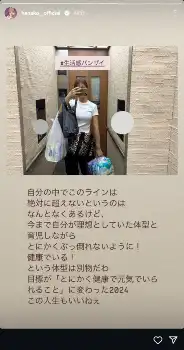 続けて「今まで自分が理想としていた体型と 育児しながらとにかくぶっ倒れないように!健康でいる!という体型は別物だわ」と告白。「目標が『とにかく健康で元気でいられること』に変わった2024 この人生もいいねぇ」とつづった。