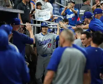 試合後はポストシーズン進出決定を祝してシャンパンで乾杯。デーブ・ロバーツ監督が音頭を取ってナインの前でスピーチし、大谷の偉業も「ショーヘイ、おめでとう!」と祝福した。その後「これがファーストステップだ。みんなおめでとう!」と締めくくると、普段アルコールを口にしない大谷もグラスに入った少量のシャンパンを一気に飲み干した。