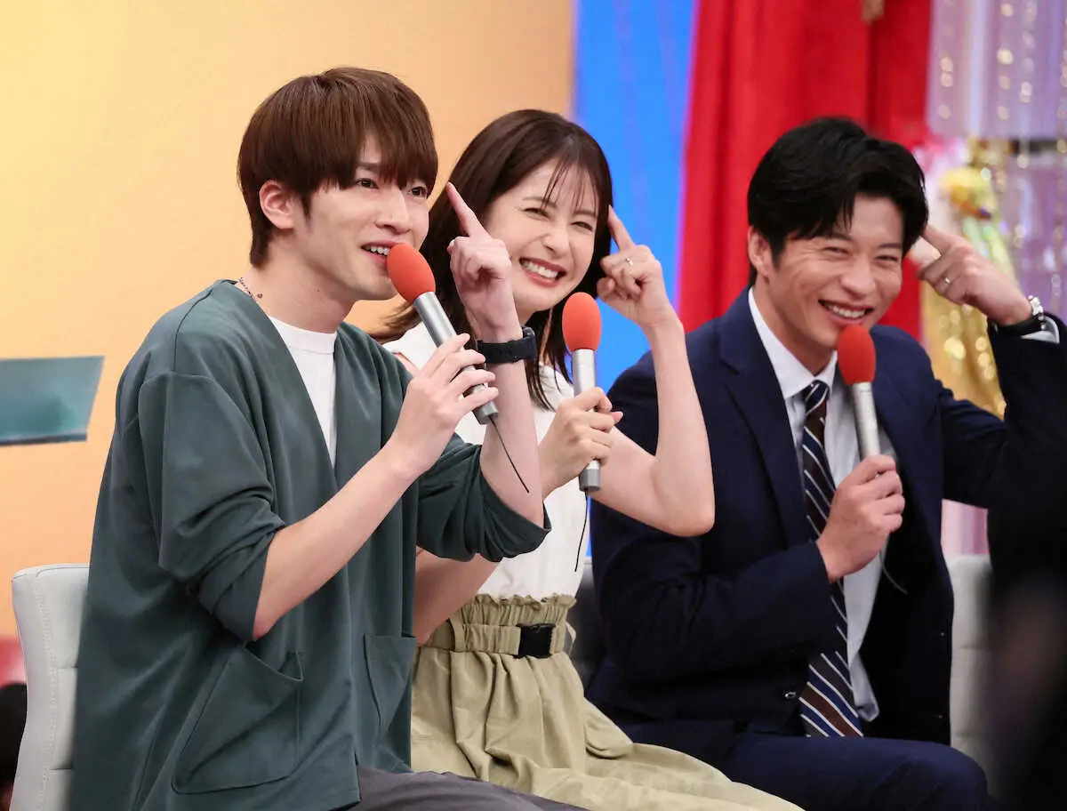<フジテレビドラマライブ2024・秋>ドラマライブに臨む(左から)深澤辰哉、松本若菜、田中圭(撮影・西海健太郎)