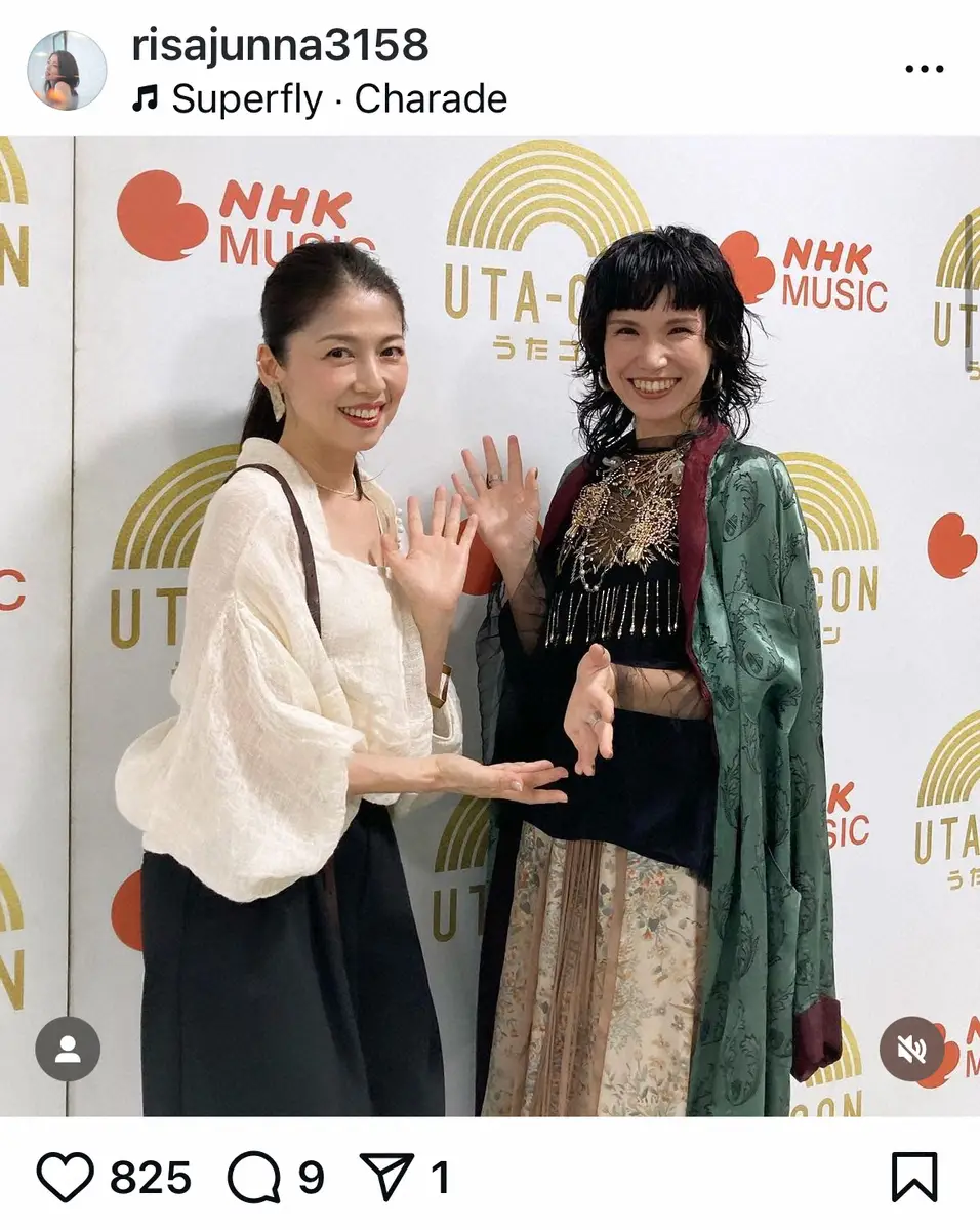 元宝塚歌劇団花組トップ娘役で女優の純名里沙(53)が21日までに自身のインスタグラムを更新。歌姫とのツーショットを投稿した。