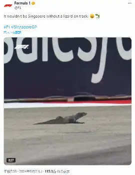F1シンガポールGPに珍客乱入!大トカゲがコースに…公式の粋な演出にネット爆笑「センスある」