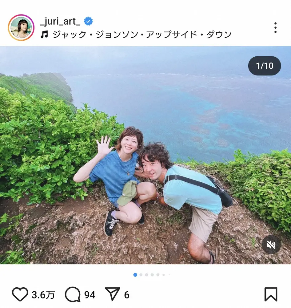 女優の上野樹里(38)が23日までに自身のインスタグラムを更新。夫でロックバンド「TRICERATOPS(トライセラトップス)」のギター、ボーカル・和田唱(48)と沖縄・宮古島を満喫する様子を披露した。