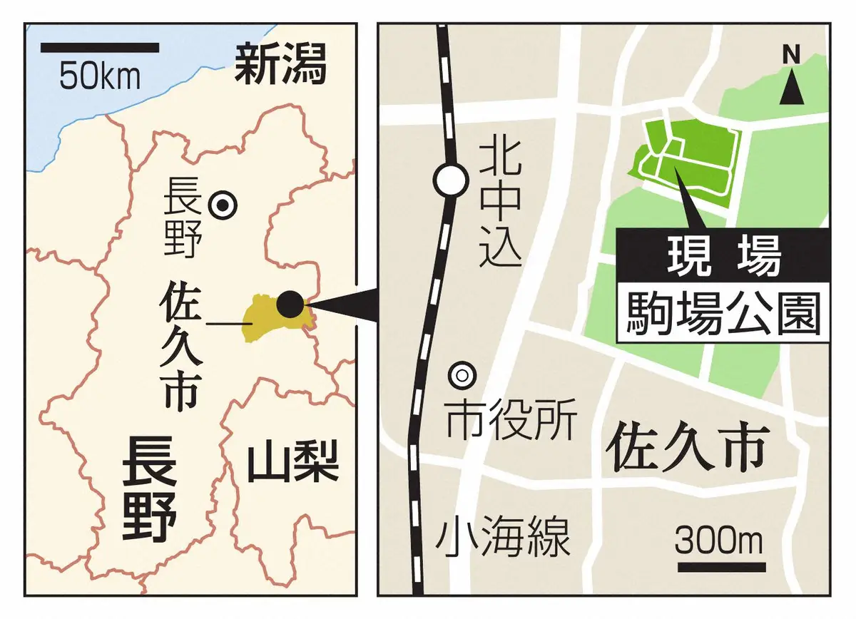 現場はJR佐久平駅から南東約3キロ。公園ではアニソンフェス「ナガノアニエラフェスタ2024」が行われていた。