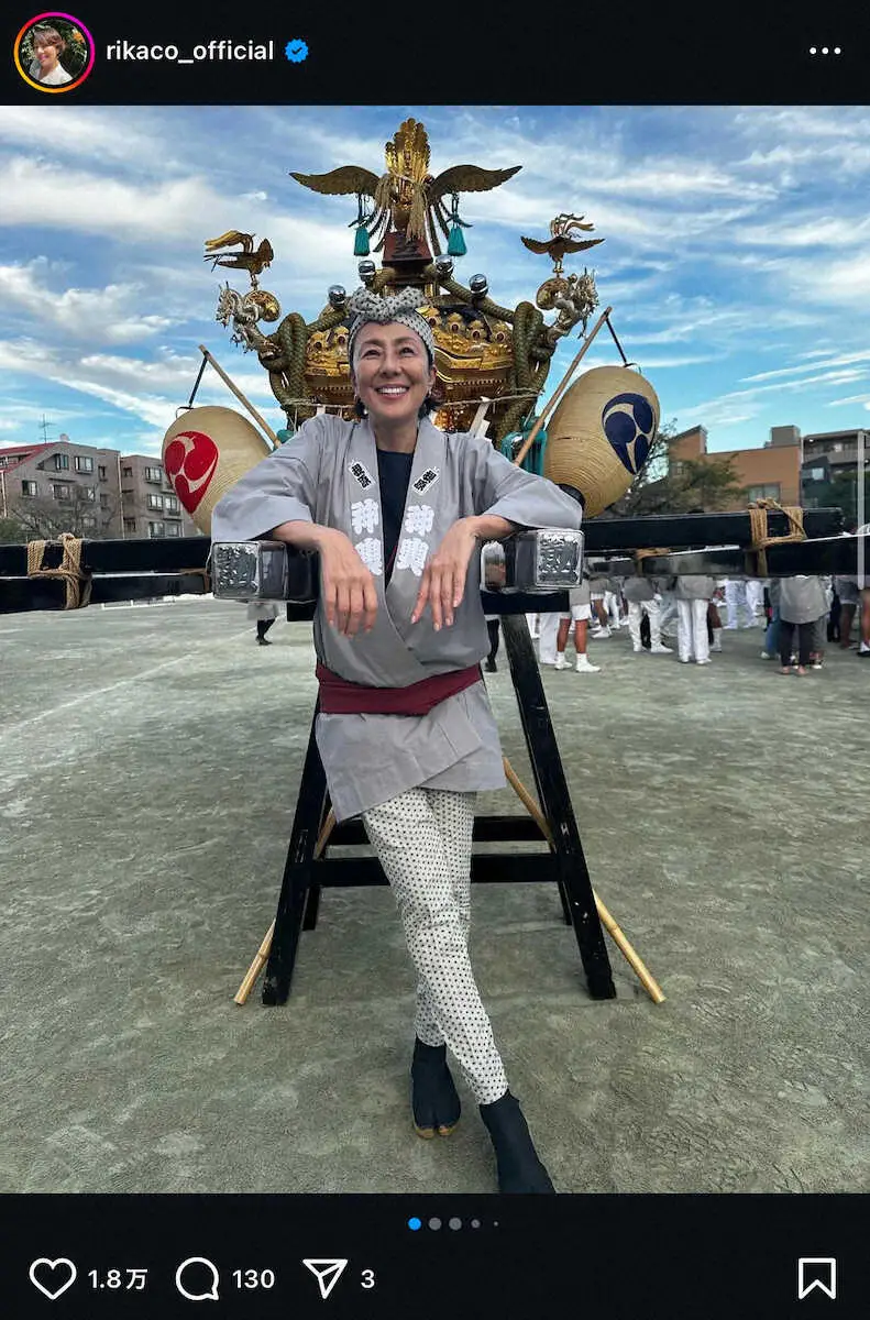 何の選手?神輿を担いでアイシングするRIKACO。RIKACOの公式インスタグラム(@rikaco_official)から RIKACO「気持ち込めて担いでます」 祭り衣装姿に「粋ですね~」「かっこ… ギャラリーで見る この記事のフォト 2024年09月24日の画像一覧 もっと見る 2024年09月24日の画像をもっと見る