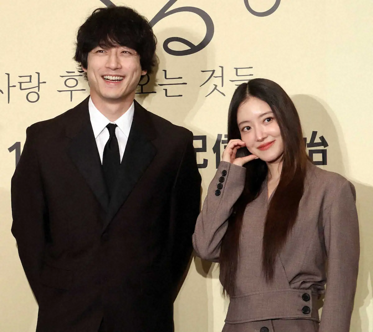 韓国ドラマ「愛のあとにくるもの」の来日会見に出席した(左から)坂口健太郎、イ・セヨン