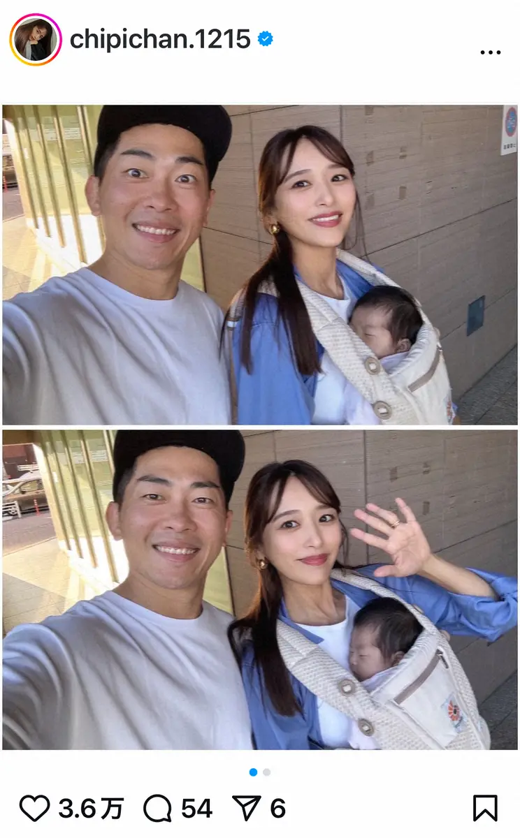 第3子女児を出産したばかりのお笑いトリオ「ジャングルポケット」の太田博久(40)の妻でモデルの近藤千尋(34)が24日に自身のインスタグラムを更新。退院以来の外出を報告した。