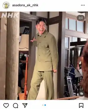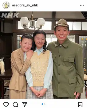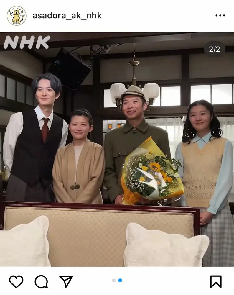同アカウントは「寅子・優未・優三。家族3人での記念写真です まだ幼かった優未と、3人で過ごした日を思い出しますね…」とコメントし、伊藤や俳優の仲野太賀、川床明日香ら“佐田家”の3ショットを公開。仲野が演じた佐田優三は娘・優未が幼い頃に戦死しており、大人になった姿の優未との幻の家族写真となった。さらに、「スワイプするとメイキング動画も!久しぶりにスタジオにきた仲野さんです!」と説明し、スタジオ入りする仲野や岡田将生が3人の輪の中に入り記念撮影を行う様子も動画で伝えた。