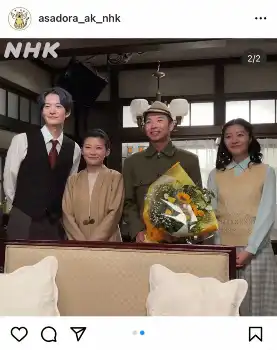 この投稿に、フォロワーからは「最高の家族ですね」「たまらないスリーショット」「優三さんの後姿が見えたとこから号泣」「いい写真」「明日で最後寂しいです…」「最後に夢の共演だ」「ああ…ついに最終週…」「優しい笑顔で温かいシーンでした」といった反響が寄せられている。