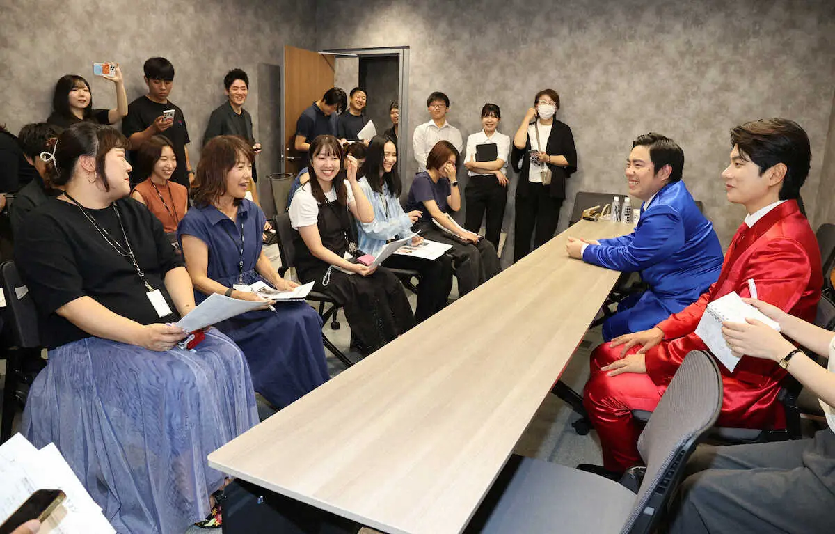 博報堂キャスティング&エンターテインメントの社員とフォトセッションに臨む徳永ゆうき(前列左)、イ・イギョン(前列中央)=撮影・大城 有生希 Photo by スポニチ イ・イギョン&徳永ゆうき K―POPならぬK―演歌でいざ紅白!?28日配信開始「… ギャラリーで見る この記事のフォト 2024年09月27日の画像一覧 もっと見る 2024年09月27日の画像をもっと見る