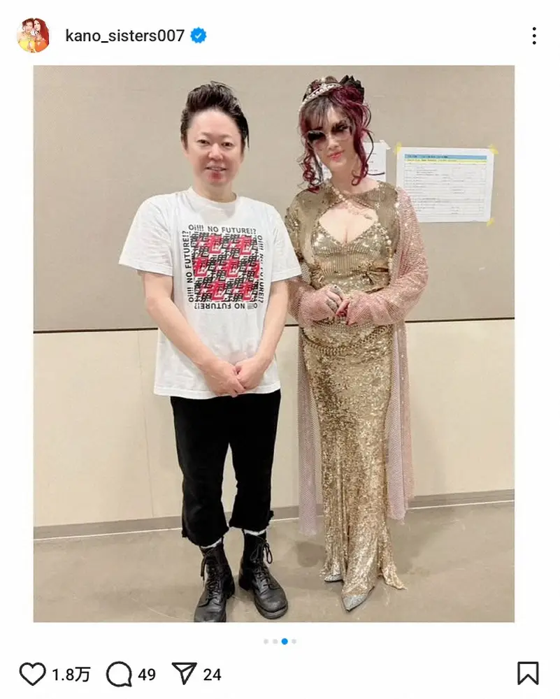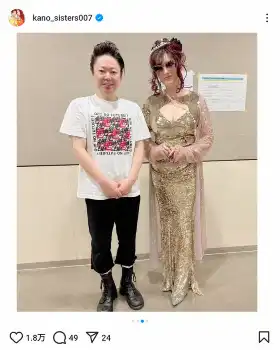 叶姉妹のインスタグラム(@kano_sisters007)より 左から「グループ魂」暴動こと宮藤官九郎、叶恭子 叶姉妹「忍びながら行って参りました」人気バンドのライブ参戦報告に総ツ… ギャラリーで見る この記事のフォト 2024年09月27日の画像一覧 もっと見る 2024年09月27日の画像をもっと見る