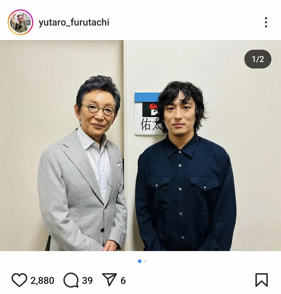 フリーアナウンサーの古舘伊知郎(69)の長男で俳優、歌手の古舘佑太郎(33)が27日までに自身のインスタグラムを更新。親子の番組共演オフショットを披露した。
