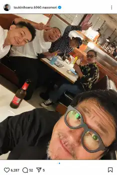 すると「思いのほか家臣団が集結してた(笑)」と、俳優の甲本雅裕、音尾琢真、波岡一喜、大森南朋、お笑いトリオ「ハナコ」の岡部大らとともに板垣を囲んだ写真を公開。「夏目殿、左衛門尉、のんべえ殿、皆…久し振りじゃの~」と懐かしんだ。
