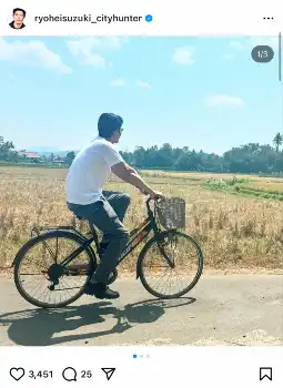 鈴木亮平 エジプト、ギリシャ…今度はインドネシア!自転車乗る“レア”ショットに「脚長い」「CMかと」
