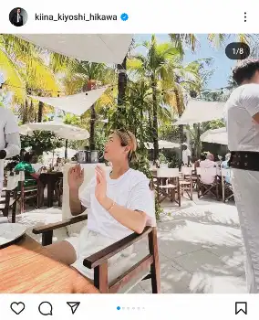 氷川は「It's pretty hot in Florida. I found a nice shop in Miami Beach.」(フロリダはかなり暑いです。マイアミビーチでいいお店を見つけました)とつづった。