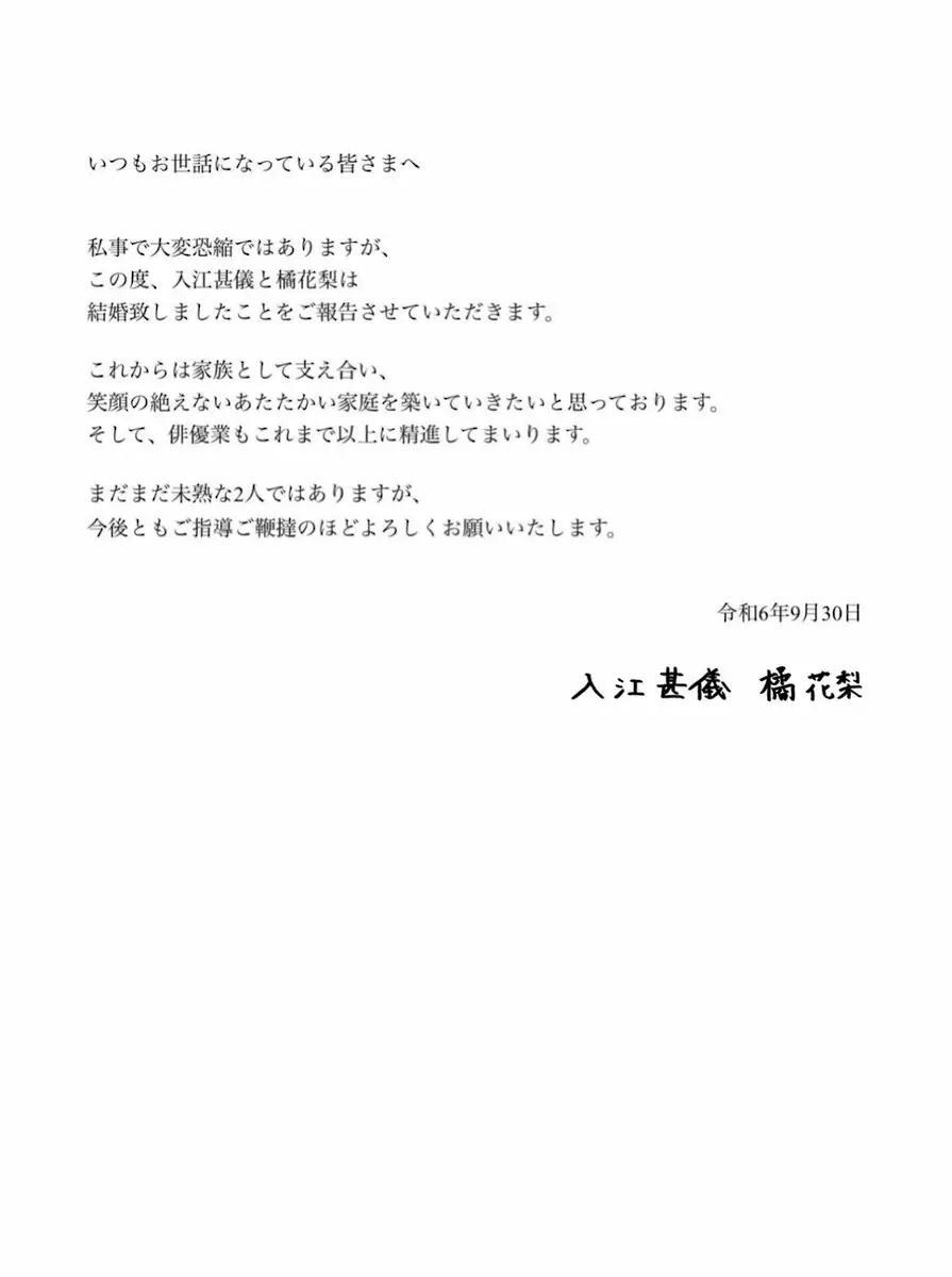 俳優の入江甚儀 Photo by スポニチ 来年大河ドラマ出演俳優の入江甚儀、女優の橘花梨と結婚発表「俳優業もこ… ギャラリーで見る この記事のフォト 2024年09月30日の画像一覧 もっと見る 2024年09月30日の画像をもっと見る