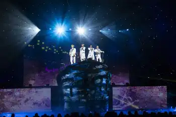 新体制初のシングル曲「君じゃなきゃだめなんだ」など全31曲を披露。塚田僚一(37)のソロ曲では曲の振り付け・演出を手掛けた屋良朝幸(41)がサプライズで出演した。終盤には高さ5メートルの船を模したセットが登場。メンバーとファンが紡いできた歴史を乗せて、新しいステージに出航していく様子が表現された。橋本良亮(31)は「初の4人体制のツアーということで初めは正直不安でしたが、いざ始まると全く問題なく公演を行うことができた」と振り返り。「それもファンの皆さまの力のおかげ」と話した。