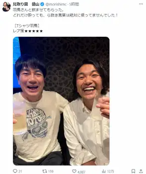 見取り図・盛山 超人気アナとプライベートで2ショット「レア度★★★★★」貴重な私服姿を公開