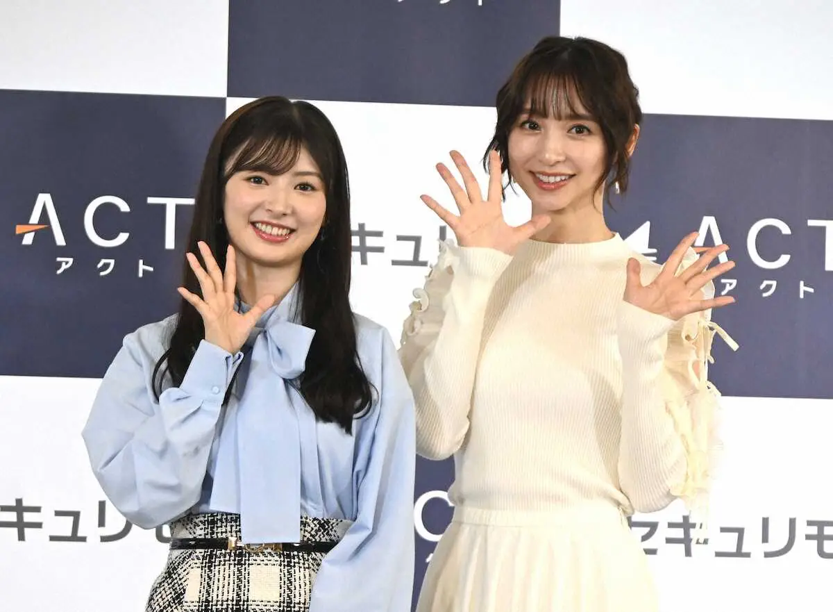 <武藤十夢 アクト広報就任発表イベント>フォトセッションに応じる(左から)武藤十夢、篠田麻里子(撮影・小渕 日向子)