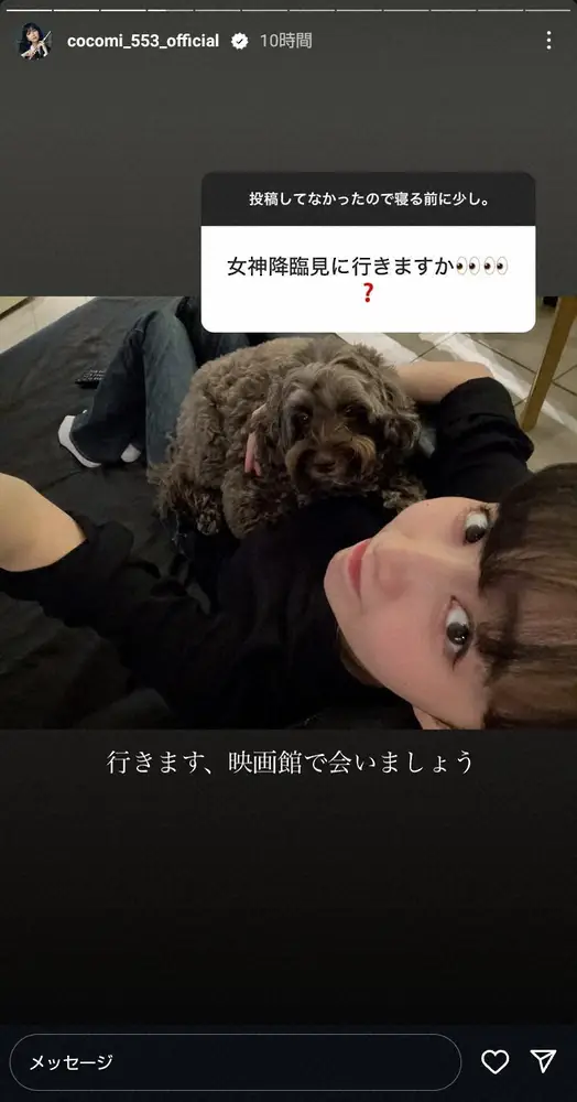Cocomiはストーリーズで「投稿してなかったので寝る前に少し」と呼びかけ、ファンとの交流を楽しんだ。