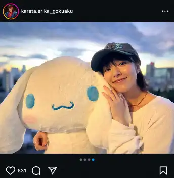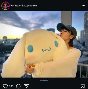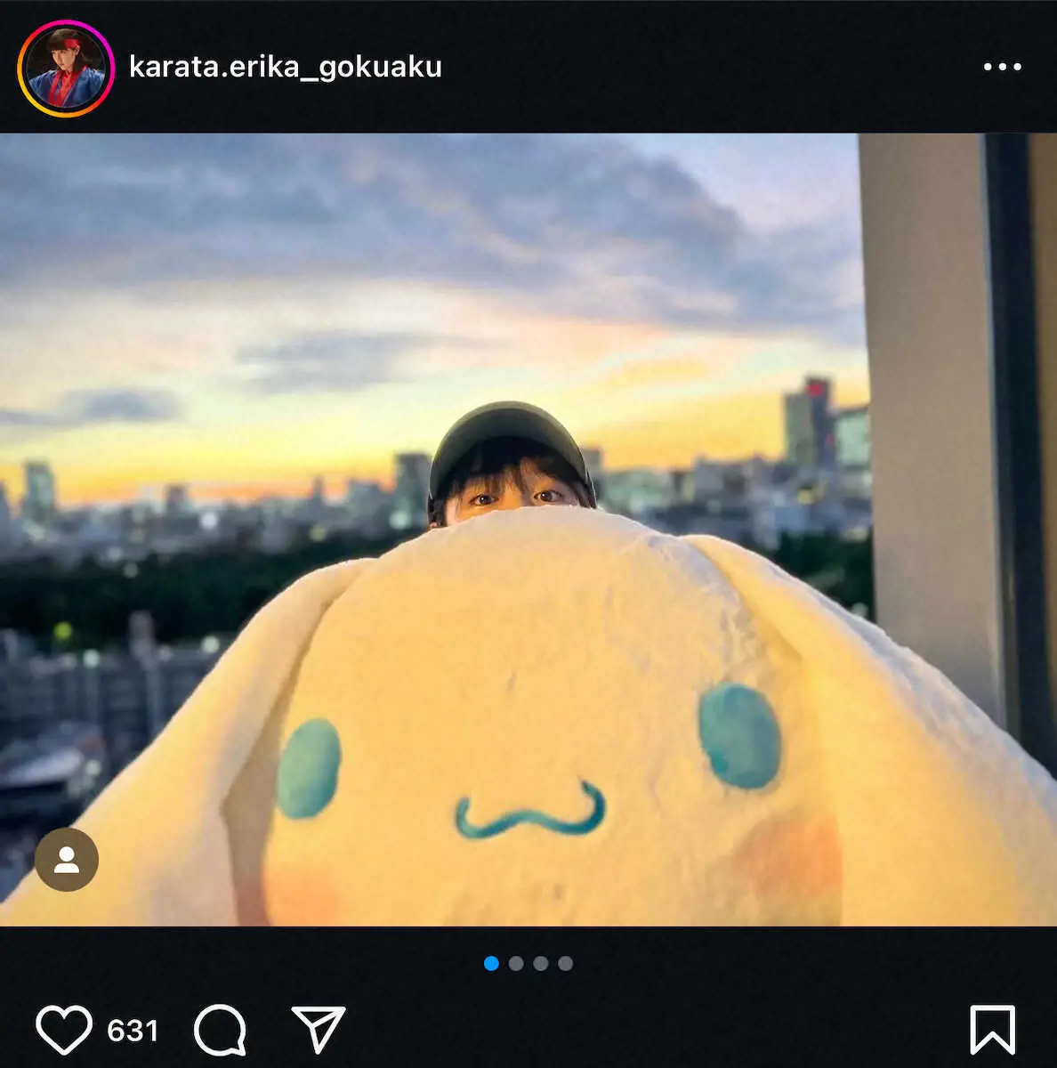 「ラジオでご一緒した際に、サンリオが好きと言ったら…嬉しすぎます。一緒に生活させてもらいます」とプレゼントでもらったサンリオキャラクター・シナモロールの大きなぬいぐるみとの写真を投稿した。