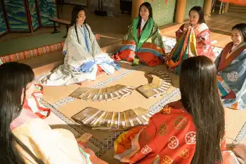 寛弘5年(1008年)。「紫式部日記」にもある「源氏物語」の冊子作りが描かれた。