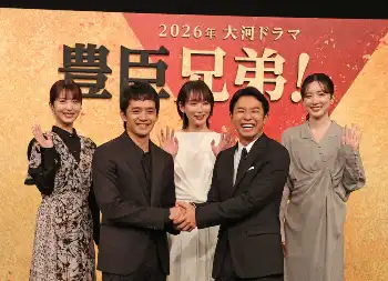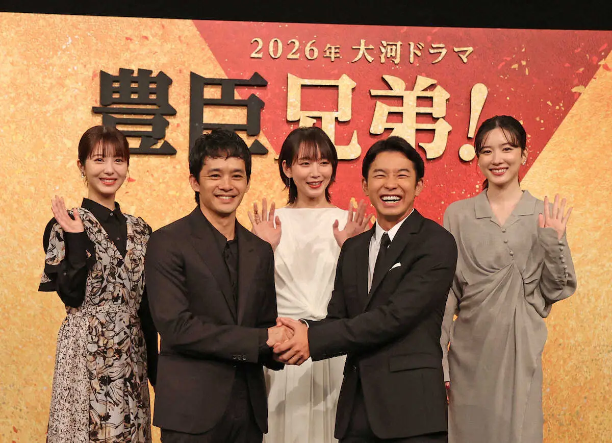 2026年のNHK大河ドラマ「豊臣兄弟!」の出演者発表会見が2日、東京・渋谷の同局で行われ、俳優の池松壮亮(34)が豊臣秀吉役を務めることが明らかになった。秀吉の弟・秀長役で主演する仲野太賀(31)とは10代からの親友。仲野が「(池松は)心の兄と思っている」と言えば、池松も「太賀」と呼びかけながら「一番仲の良い、いろいろな話をしてきた間柄」と語るなど信頼関係をのぞかせた。