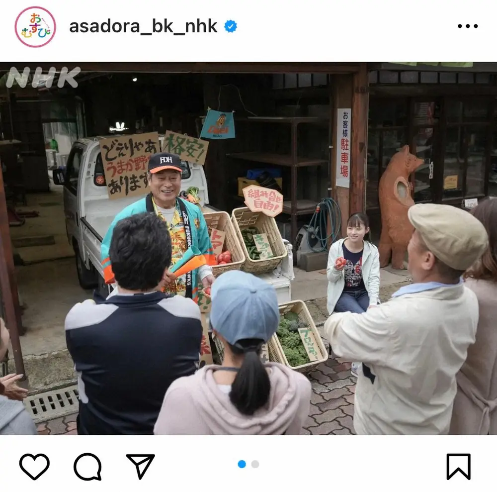 同アカウントは「祖父・永吉さんによる野菜のたたき売りは大盛況。永吉さんと父・聖人さんは言い争いになってしまいましたが…。考えは違えど、育てた野菜への愛情を持っていない人はいません」「規格外は“クズ”という言葉が、引っかかってしまう結。考えているのはきっと野菜のことばかりではありません」とつづり、永吉が福岡ダイエー(現福岡ソフトバンクホークス)を応援するハッピ姿で規格外の野菜を売る姿を公開。