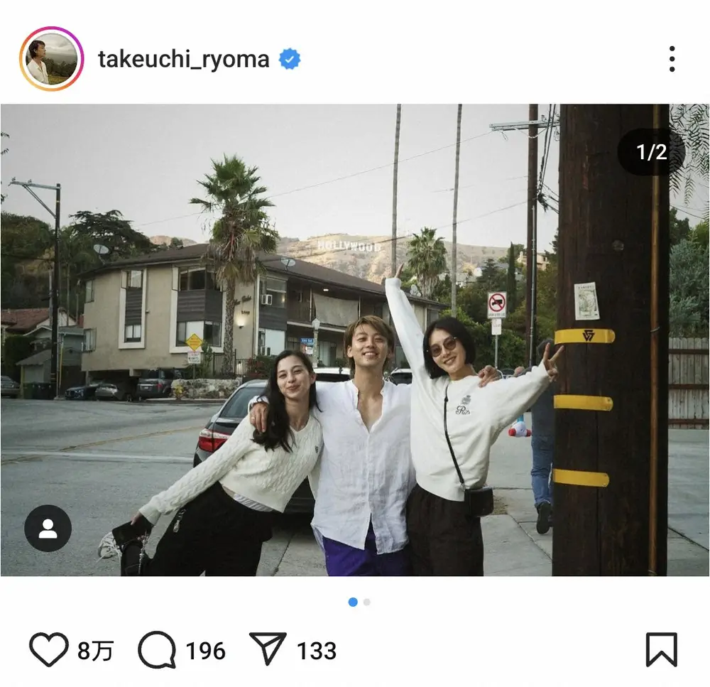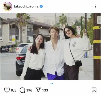 俳優の竹内涼真(31)が4日までに自身のインスタグラムを更新。米ロサンゼルスでドラマで共演した女優2人と再会したことを明かした。