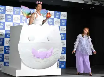 1人で登場した藤本。すると、巨大タマゴから虹色の翼をつけて「ウーモ」になりきった庄司が「庄司ウーモ」としてサプライズ登場した。こん身の「みきティー!」を披露すると、藤本も「100点満点!可愛いし似合ってる!」と絶賛した。