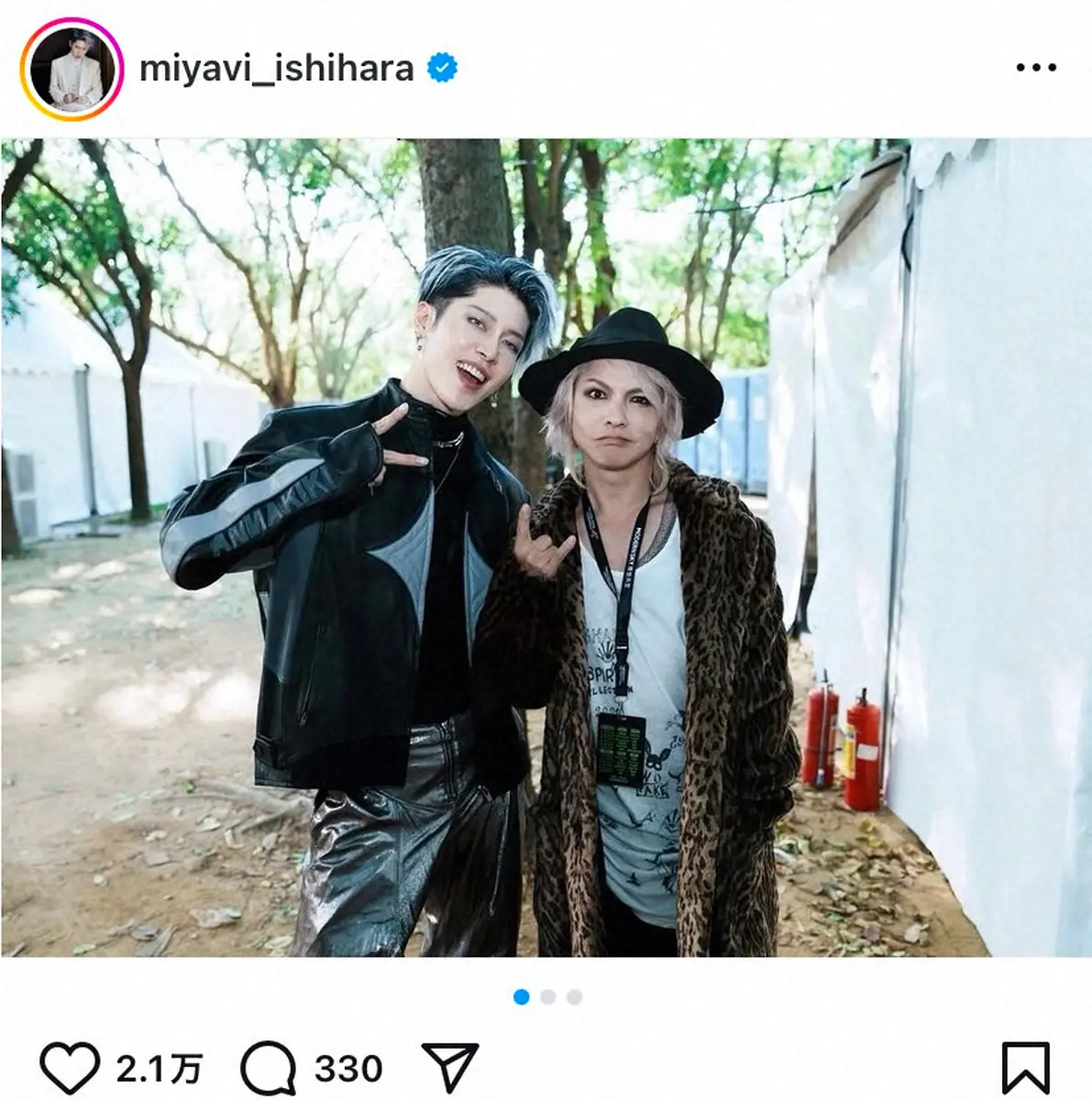 世界的ギタリストのMIYAVI(43)が4日、自身のインスタグラムを更新。憧れのミュージシャン、ロックバンド「L'Arc~en~Ciel」のHYDE(55)と再会したことを報告した。