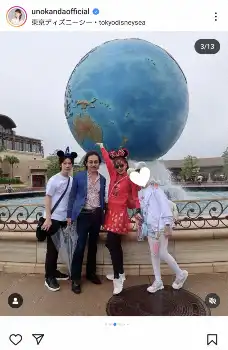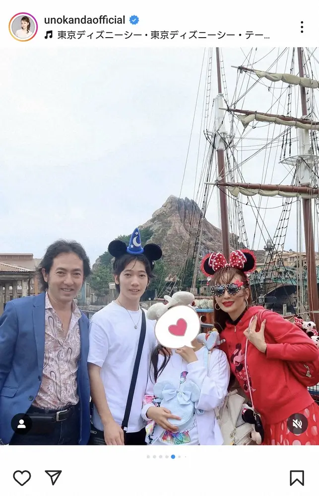 タレントの神田うの(49)が5日までに自身のインスタグラムを更新。12歳の愛娘、「千の風になって」の大ヒットで知られるテノール歌手の秋川雅史(56)とピアニスト・秋川風雅(20)親子との東京ディズニーシー満喫ショットを披露した。