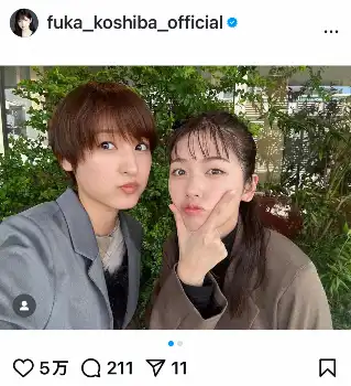 これらの投稿に、5万件を超える「いいね!」の反響。ファンからは「かわいい2ショット」「素敵なツーショットです」「ビッグカップル誕生か?てか」「癒されます」「お似合いの二人」「本当だ!めっちゃイケメン!!」などのコメントが寄せられている。