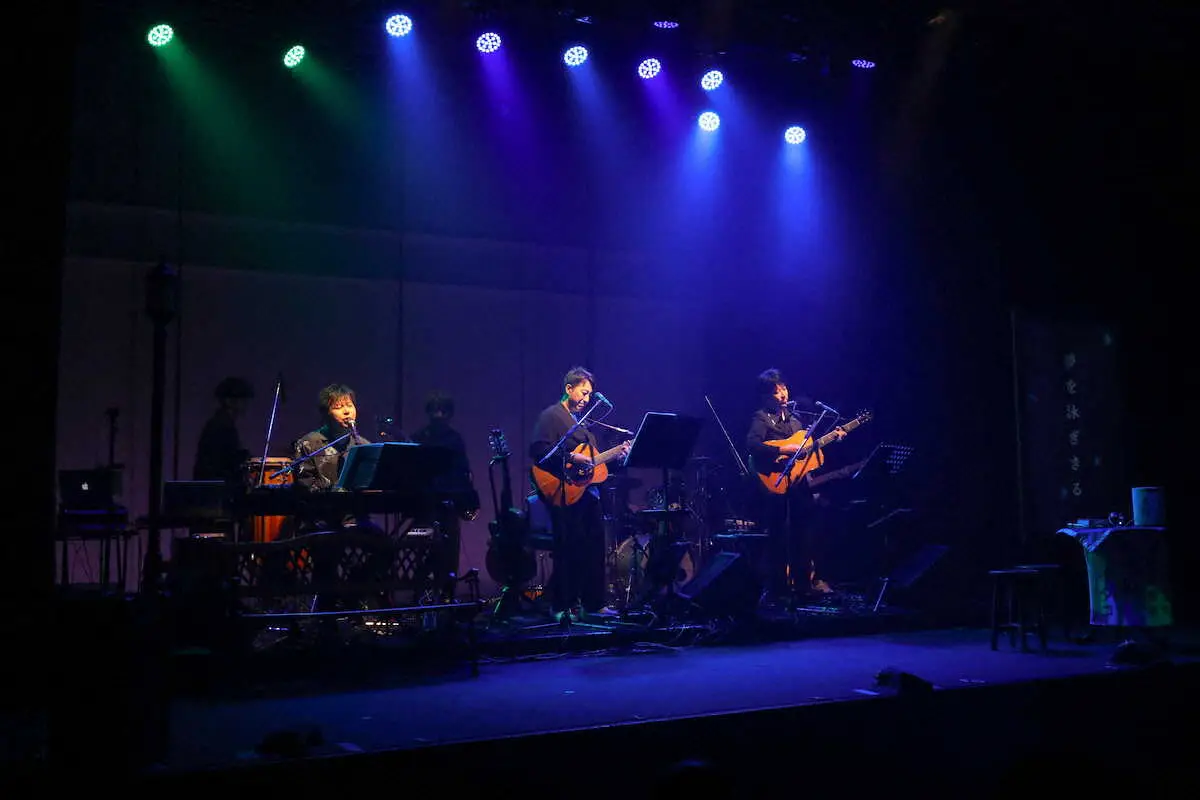 バンドが演奏する楽曲は、普遍性を持ちながらも、登場人物の心情に寄り添う。フォーク調の曲を中心に、ロック、ブルースといった要素も。中盤にはライブコーナーもあり、観客とともに大きく盛り上がった。