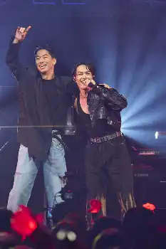 台北で初の海外公演を行った今市隆二(左)とゲスト出演したEXILEのAKIRA