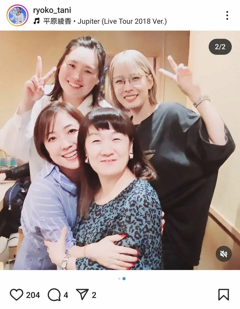 5日の投稿で、歌手の平原綾香と食事をしたことを明かし、2ショットを披露した谷は「先日のインスタ記事のつづく~からの、つづき~世界のフェンシング界の超スーパースター江村美咲さん、世界の陸上界の超スーパースター北口榛花さん、歌の世界の超スーパースター平原綾香さんとの4人の写真が届きました~」と書き出すと、自身と平原、北口、江村の集合ショットをアップ。