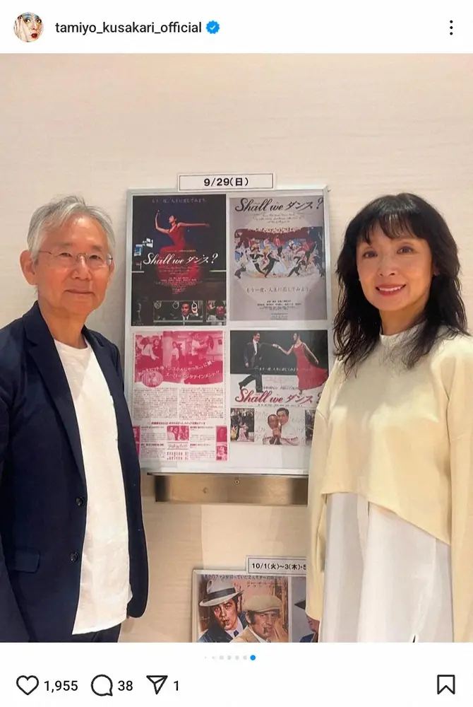 女優の草刈民代(59)が8日までに、自身のインスタグラムを更新。1997年に結婚した夫で映画監督の周防正行氏との2ショット写真を披露した。