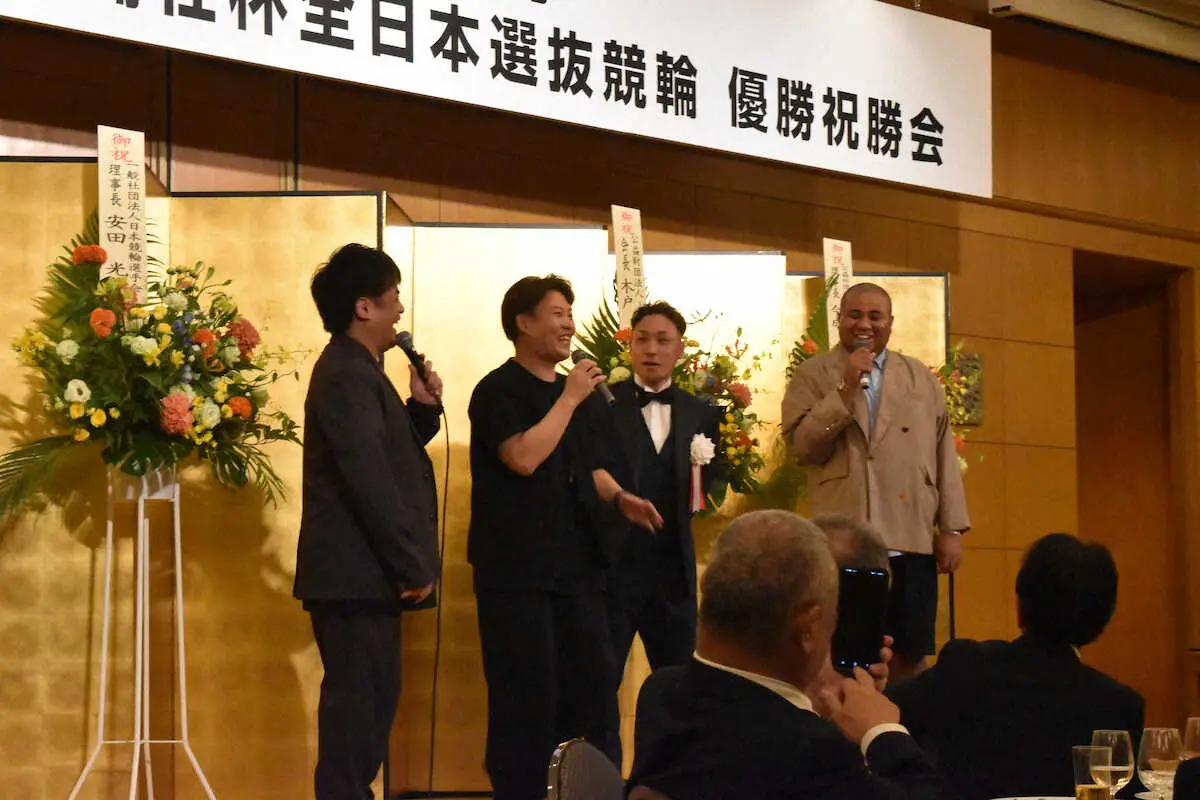 お笑いトリオ「ジャングルポケット」の斉藤慎二(41)が7日に不同意性交などの疑いで警視庁に書類送検されてから一夜明けた8日、メンバーのおたけ(41)が横浜市内で開かれた競輪の郡司浩平(34)のG1「全日本選抜競輪」の優勝を記念した祝勝会にゲスト出席した。