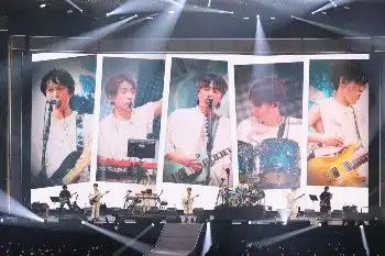 20年の軌跡と未来を描いた「Eighdays」など全25曲を披露した。「オモイダマ」では駒沢大学高校の吹奏楽部37人と共演。MCでは安田章大(40)と丸山隆平(40)による「山田」の漫才で会場が爆笑に包まれた。「“超”勝手に仕上がれ」では「S!U!P!E!R! SUPER EIGHT」とメンバーと1万5000人で声を合わせた。