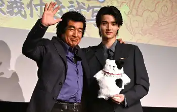 俳優の藤岡真威人(20)、藤岡弘、(78)が11日、都内で行われた映画「八犬伝」(監督曽利文彦)<正義で何が悪い>ヒーロー談義付き特別試写会に出席した。
