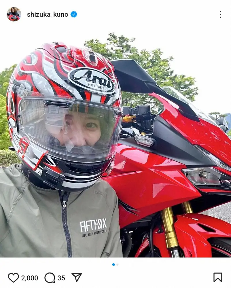 この日は「せっかく関西に住んでいるので、大阪城とバイクをカッコよく撮りたかったんですが…」と切り出し、ヘルメット姿の自身と愛車・ホンダCBR250RRとの2ショットを公開した。