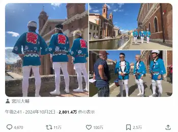 VTRでは法被姿の内村光良、宮川大輔と再会を果たし、イタリアへ。北部のコマッキオで、うなぎ舟と呼ばれる舟を使ったレースに挑んだ。ロケの自撮り動画では、「テイッ!手越祐也です!」と、番組でおなじみのポーズを久々に披露。これまでと変わらない笑いどころたっぷりの奮闘ぶりに、ネット上でも大きな反響を呼んだ。