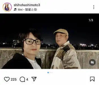 橋本志穂 「アトラス彗星を見ようと、、、」ガダルカナル・タカとの仲良し夫婦ショットに「ホッコリ」の声