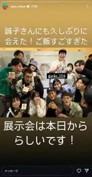 続く投稿で「誠子さんにも久しぶりに会えた!ご飯すごすぎた」と、元「尼神インター」の誠子を交えた総勢13名の芸人らの集合写真を掲載しつつ、誠子が差し入れたケータリングのミニ弁当も絶賛。「展示会は本日かららしいです!」と補足した。