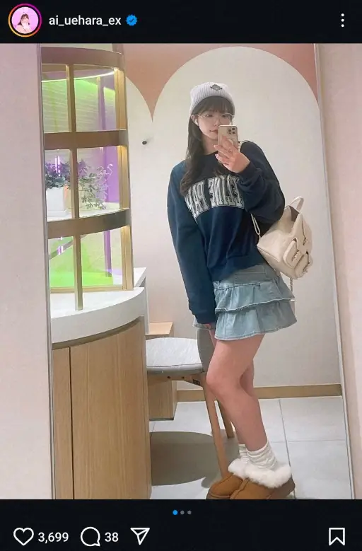 上原亜衣 ミニスカ秋冬コーデ披露に「女神みたい」「可愛すぎんか?」「露出少ない亜衣ちゃんも可愛い」