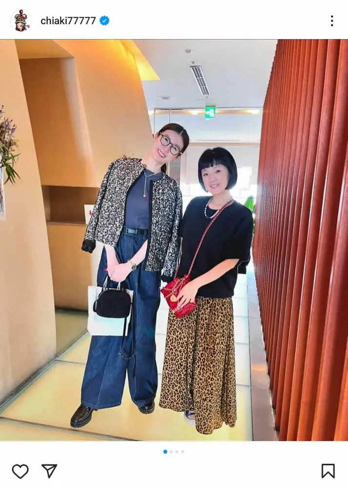 タレントの千秋が18日までに、自身のインスタグラムを更新。親交のある女優との2ショット写真を披露した。