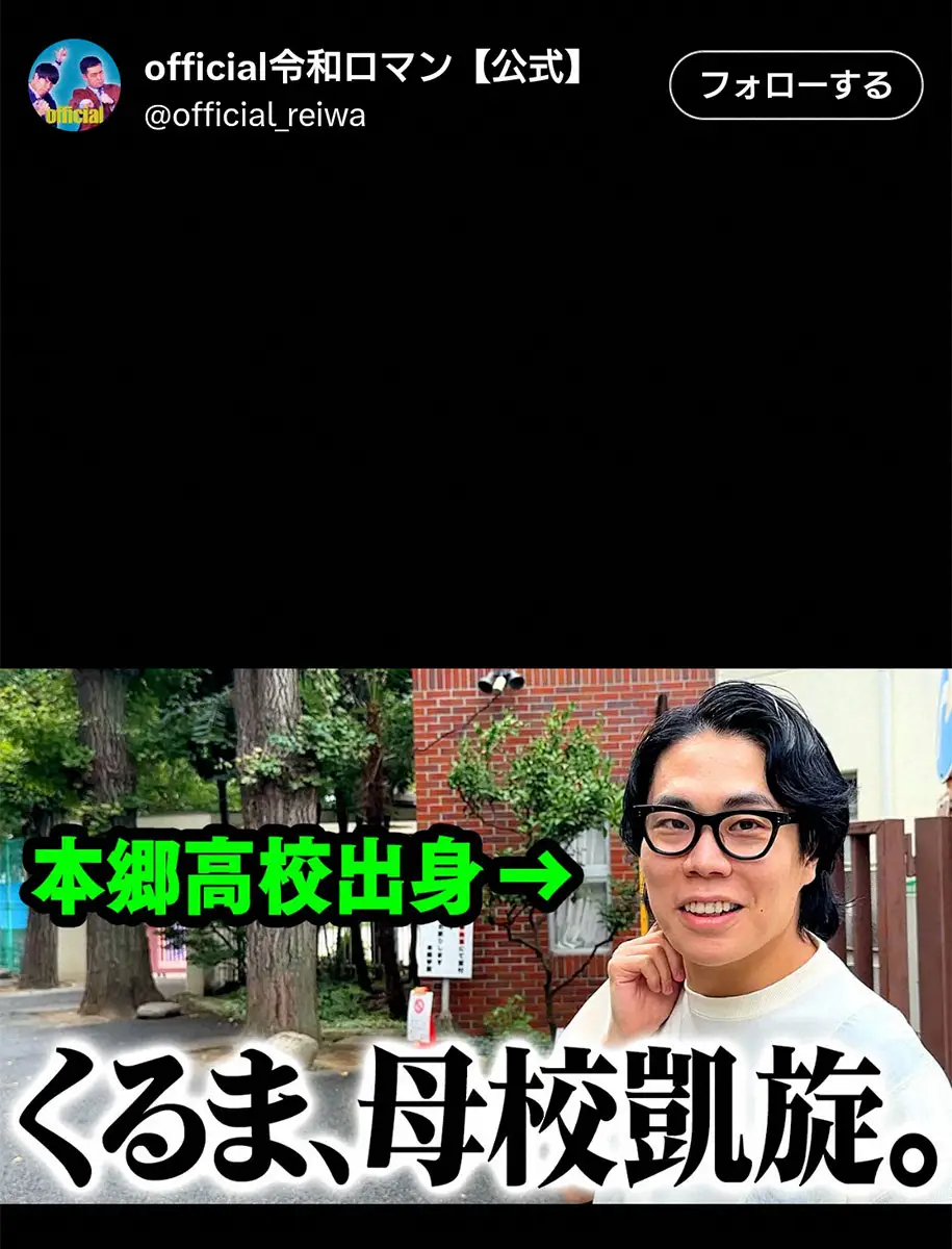 「【M-1王者輩出】くるまの原点が分かる!母校「本郷高校」に凱旋!」とし、都内の母校を訪問したもの。
