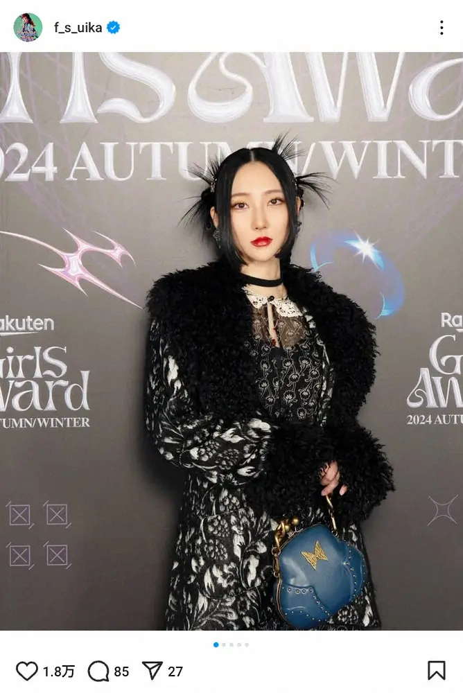 ウイカは「初のガルアワ 初ランウェイ!」と報告。「ANNA SUIさんステージありがとうございました!楽しかった~!FF8のイデアかFF10のルールーな雰囲気あった」と伝えた。